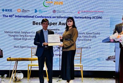 ICOIN 2026(베트남 하노이)에서 Best Paper Award를 수...우리 연구실은 2026년 1월 베트남 하노이에서 개최된 ICOIN 2026 에서 “Multi-Agent Deep Reinforcement Learning for Dynamic Multi-AP Cooperation in Cell-Free Massive MIMO Networks” 논문으로 Best Paper Award... -